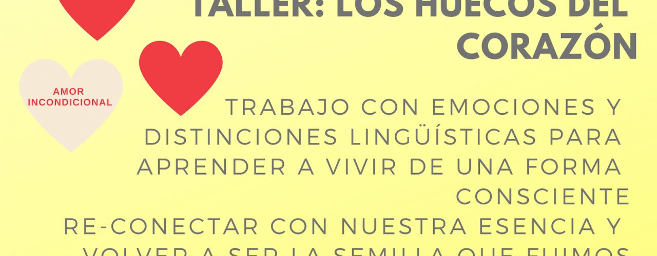 TALLER LOS HUECOS DEL CORAZÓN. 29 y 30 de Marzo “Tú debes ser el cambio que quieres ver en el mundo”, esta es la idea principal … Sigue leyendo Los huecos del Corazón. 29 y 30 de Marzo 2019